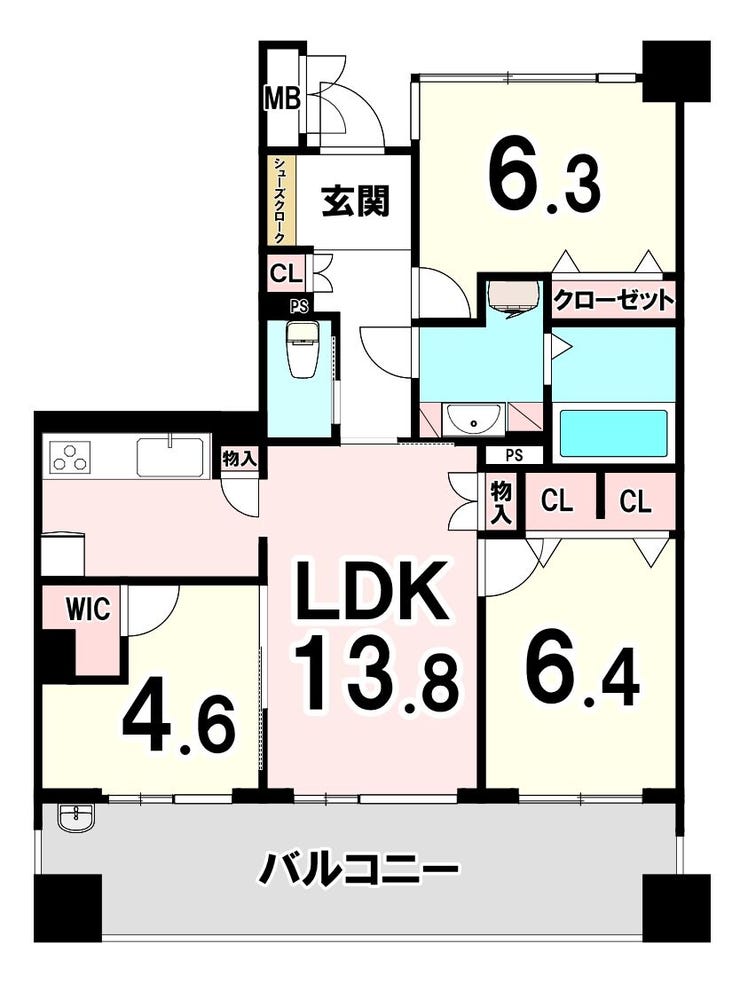 | 専有面積 | 壁芯 73.00㎡ | 所在階 | 13階建/3階部分 |