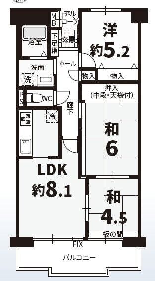 | 専有面積 | 壁芯 62.86㎡ | 所在階 | 8階建/6階部分 |