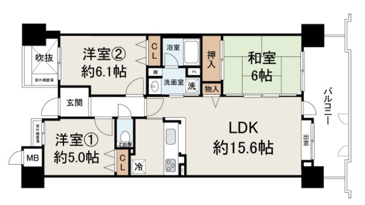 | 主要採光 | バルコニー | 南西向12.26㎡ | |