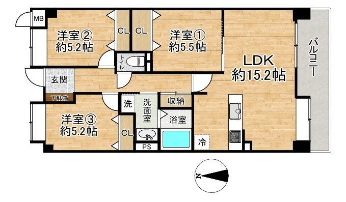 | 主要採光 | 南向 | バルコニー | 南向9.75㎡ |