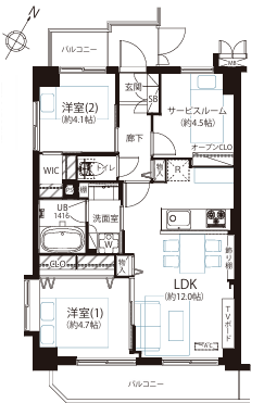 - 2面バルコニー