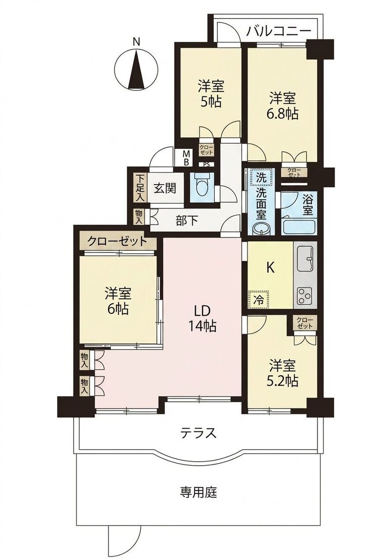 | 専有面積 | 壁芯 90.16㎡ | 所在階 | 14階建/1階部分 |