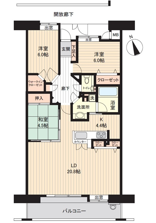| 主要採光 | 南向 | バルコニー | 南向14.44㎡ |