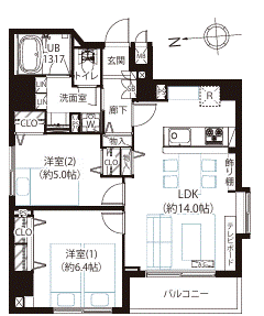 | 専有面積 | 壁芯 59.94㎡ | 所在階 | 9階建/7階部分 |
