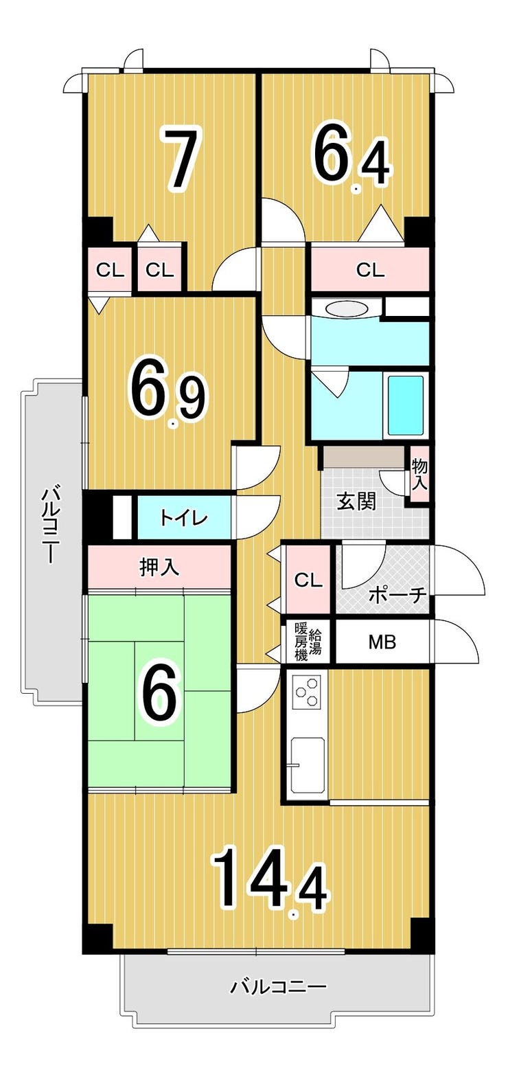 ・二面バルコニーあり、通風良好です
