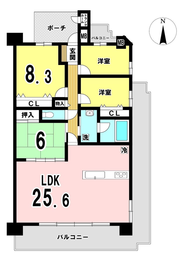 ●3面バルコニー●4LDK●LDK約25.6帖●奥町駅徒歩約9分