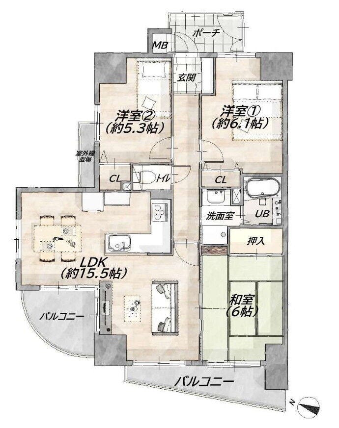 - 2面バルコニー