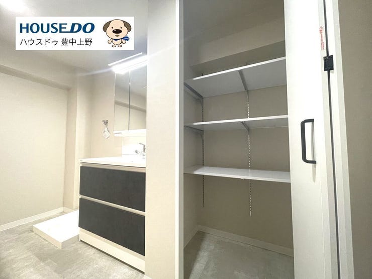 ・何かと物が増えがちな洗面室は広々!収納棚もあり!