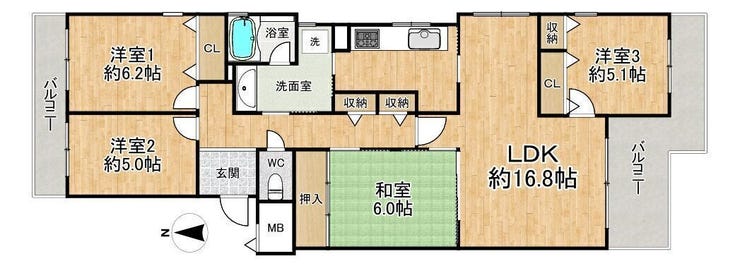 - 2面バルコニー