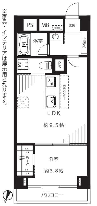 | 主要採光 | 北向 | バルコニー | 北向1.70㎡ |