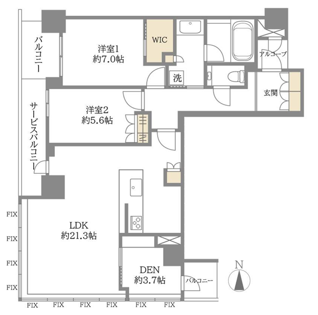 | 専有面積 | 壁芯 85.64㎡ | 所在階 | 51階建/21階部分 |
