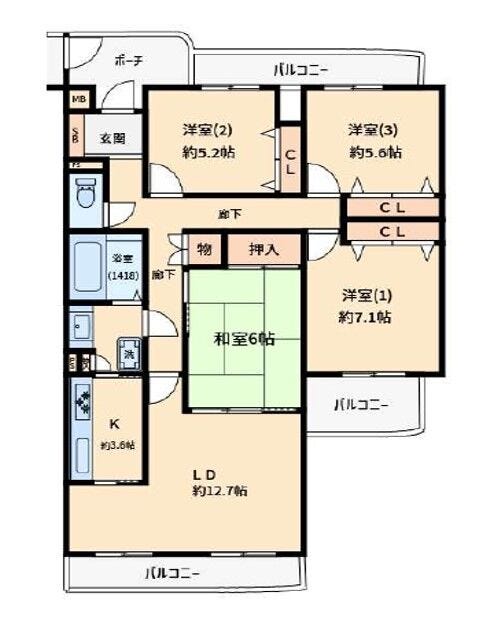 | 主要採光 | バルコニー | ||