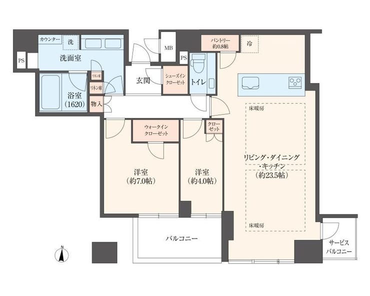 - 2面バルコニー